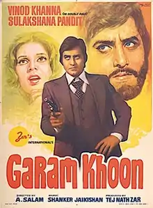 Garam Khoon (transl. Hot Blood) is a 1980 Hindi-language action film. Produced and written by Tej Nath Zar and directed by A. Salam. The film stars Vinod Khanna, Sulakshana Pandit, Bindu in lead roles and Ajit as main protagonist. The film's music is by Shankar Jaikishan
