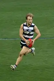 Gary Ablett Jr. (born 14 May 1984) is a former professional Australian rules footballer who played for the Geelong Football Club and Gold Coast Suns in the Australian Football League (AFL). The eldest son of Australian Football Hall of Fame member and former Hawthorn and Geelong player Gary Ablett Sr., Ablett was drafted to Geelong under the father–son rule in the 2001 national draft and has since become recognised as one of the all-time great midfielders.[1] Ablett is a dual premiership player, dual Brownlow Medallist, five-time Leigh Matthews Trophy winner, three-time AFLCA champion player of the year award winner and eight-time All-Australian.