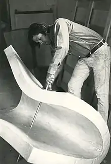 Gary Kuehn was born in 1939 to working-class family. His father was a machinist and a member of the Communist Party during the McCarthy Era.[5] After receiving his BFA in Art History at Drew University he was encouraged by his mentor George Segal to attend the newly formed MFA program at Rutgers University where he studied with Roy Lichtenstein, Allan Kaprow, and Geoffrey Hendricks.[6][7] At that time Rutgers University was a hub for the Fluxus movement and Kuehn attended the very first happenings which took place at George Segal's farm in New Jersey. As a student, Kuehn produced a sculpture for the 1963 Yam Festival organized by George Brecht and Robert Watts in New Brusnswick, New Jersey and in 1964 he choreographed a performance at the Hardware Poets Playhouse in New York.[8]