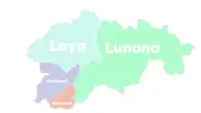 Gasa District or Gasa Dzongkhag (Dzongkha: མགར་ས་རྫོང་ཁག་; Wylie: Mgar-sa rdzong-khag) is one of the 20 dzongkhags (districts) comprising Bhutan. The capital of Gasa District is Gasa Dzong near Gasa. It is located in the far north of the county and spans the Middle and High regions of the Tibetan Himalayas. The dominant language of the district is Dzongkha, which is the national language. Related languages, Layakha and Lunanakha, are spoken by semi-nomadic communities in the north of the district. The People's Republic of China claims the northern part of Gasa District.