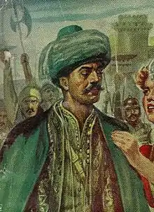 ![]() Ideal portrait of Gazi Hüseyin Pasha on a 20th-century book cover | |