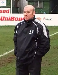 Gary Hayward and Andy Freeman led Gedling into 2006–07 before being dismissed on disciplinary grounds in December.[52][53] Player-manager James Jepson and assistant Devon White subsequently took charge.[53] The team recruited throughout the season, signing young prospects alongside former Football League midfielder Shaun Murray.[52][54] Suffering from injury, Jepson was replaced in February by his father, Paul, as Gedling closed in fourteenth.[18][55] Lee Wilson became manager for 2007–08, with Jimmy Albans returning as assistant.[4] Wilson and Albans oversaw a winning start to the campaign before leaving for Shepshed Dynamo in November,[2][56] a move which, joined by assistant Tony Cox, saw John Humphries return to management for the rest of the season.[57][58] Challenged by low attendances and a meagre transfer budget,[56][59] a "disastrous run in" saw Gedling finish in sixth.[2][18]