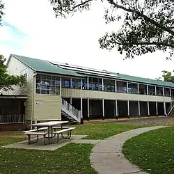 At this time, the overriding concern for the Department of Public Instruction was the need to build school buildings as expeditiously and economically as possible.[7] Responding to materials shortages and the pressures of the baby boom, the DPW imported a British building system from manufacturers Boulton & Paul Ltd of Norwich, England. These modular buildings were constructed at many schools across Queensland between 1951 and 1958, including at Geebung State School.[8][1]