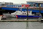 The Maritime Gendarmerie (French: Gendarmerie maritime) is a component of the French National Gendarmerie under operational control of the chief of staff of the French Navy. It employs 1,157 personnel and operates around thirty patrol boats and high-speed motorboats distributed on the littoral waterways of France.[3] Like their land-based colleagues the Gendarmes Maritime are military personnel carry out policing operations in addition to their primary role as a coast guard service. They also carry out provost duties within the French Navy.