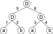 Then the ?'s in the expression tree are replaced from left to right and from top to bottom by the symbols (for simplicity represented by numerals) in the Dc, giving:
