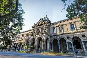 General Artigas railway station (Spanish: Estación Central General Artigas) is the former main railway station in Montevideo, Uruguay. Located in barrio Aguada, it was designed by the Italian engineer and architect Luigi Andreoni, it was opened to the public on 15 July 1897 and was closed on 1 March 2003, being replaced by a halt 500 metres (1,600 ft) to the north.