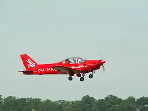 The General Avia F 22 Pinguino is an Italian two-seat aircraft by GeneralAvia.[1] It was designed by Stelio Frati and is his 22nd design. The aircraft was manufactured in four configurations, the "A" model with fixed gear, 116 hp Lycoming (O-235-N2C), & fixed prop, the "B" model same as the "A" but with uprated 160Hp Lycoming engine (O-320-D2A), the "R" model with retractable gear, the same 160 Hp Lycoming (O-320-D2A) and the "C" model with retractable gear, constant speed prop, and 180 HP Lycoming (O-360-A1A). The aircraft has two side-by-side seats in an enclosed cockpit.