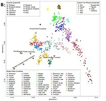 - Bauchet M, McEvoy B, Pearson LN, Quillen EE, Sarkisian T, Hovhannesyan K, Deka R, Bradley DG, Shriver MD (May 2007). "Measuring European population stratification with microarray genotype data". American Journal of Human Genetics. 80 (5): 948–56. doi:10.1086/513477. PMC 1852743. PMID 17436249.