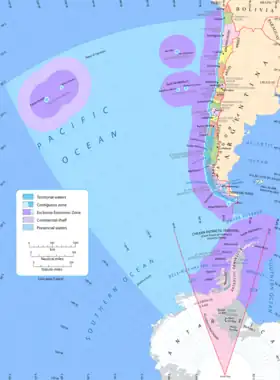 This does not include the Chilean claims to Antarctica, which overlap with Argentinian and British claims. All Antarctic claims are frozen under the Antarctic treaty.