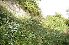 The chalk is often covered by a clay-with-flints deposit, which is formed of the weathered remnants of Cenozoic rocks and chalk.[1][3]