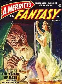 His short story, "The Thing from—'Outside'", which had originally appeared in Hugo Gernsback's magazine Science and Invention, was reprinted in the first issue of the first science fiction magazine, Amazing Stories, in April 1926.[4] The novel The Air Trust (1915) is the story of a billionaire, Isaac Flint, who attempts to control the very air people breathe, and the violent consequences of his ambition and greed. In the concluding chapter, Flint is described as one of "the most sinister and cruel minds ever evolved upon this planet."[5]