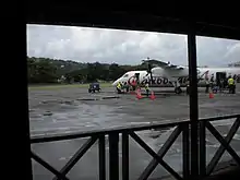The airport previously had scheduled passenger jet service flown by Caribair (Puerto Rico) which in 1968 was operating McDonnell Douglas DC-9-30 jetliners on a daily basis with nonstop flights to Antigua and Barbados with direct jet service to Port of Spain, Trinidad, St. Maarten, San Juan, Puerto Rico, St. Croix and St. Thomas.[8] In 1973, Leeward Islands Air Transport (LIAT) was operating stretched British Aircraft Corporation BAC One-Eleven series 500 twin jets on nonstop flights to Antigua, Barbados and Fort-de-France, Martinique as well as direct, no change of plane jet service with the BAC One-Eleven to Port of Spain, Trinidad, St. Maarten and San Juan, Puerto Rico.[9] In 1995, Carib Express was operating British Aerospace BAe 146-100 jet flights into the airport nonstop from Barbados, Dominica and St. Vincent as well as one stop BAe 146 service from Port of Spain and St. Kitts.[10] Another previous jet operator was BWIA West Indies Airways (operating as BWIA International at the time) which in 1996 was operating McDonnell Douglas MD-80 jetliners between the airport and Miami twice a week and also twice a week between the airport and New York JFK Airport with both of these direct, no change of plane flights making an intermediate stop in Antigua as well as flying MD-80 service several days a week nonstop to Barbados with these flights then continuing on to Port of Spain.[11]