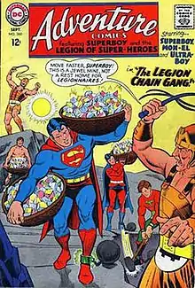 In 1955, Klein began his long association with penciler Curt Swan on a variety of titles in DC Comics' "Superman family", edited by Mort Weisinger. Starting with uncredited but generally recognized inks over Swan in Superboy #38 (Jan. 1955) – on a backup story featuring the Boy of Steel vs. "Public Chimp Number One!" – Klein soon took on the lead features there and in Adventure Comics, starring Superboy; Superman, starting in late 1961; and DC's flagship title, Action Comics, starring Superman, in 1962. Later in the 1960s, Klein became the chief inker on Adventure's lead feature, the Legion of Super-Heroes, by writer Jim Shooter and penciler Swan,[5] helping set the visual foundation for what would become one of DC's most popular series.