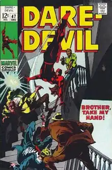Regardless, Klein was working almost exclusively for DC Comics during this time, known as the Silver Age of Comic Books, until DC's 1968 shakeup (see above). Klein then became one of Marvel's most high-profile inkers in the short time before his death. He embellished John Buscema on a run of The Avengers; Gene Colan on issues #46-49 off that penciler's signature series, Daredevil; and, in his last assignment, Jack Kirby on Thor #168–169 (Sept.-Oct. 1969).[5] Among the Silver Age issues he inked were the Avengers stories that introduced the Vision, Yellowjacket, and the Clint Barton Goliath, and another with the marriage of Henry Pym and the Wasp, Janet Van Dyne; "Brother, Take My Hand" in Daredevil #47 (Dec. 1968), cited by Stan Lee as one of his favorites among the comic-book stories he wrote; and the cover and interior of one of Barry Windsor-Smith's first U.S. comic books, Daredevil #51 (April 1969).