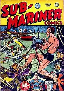 Klein attended the Kansas City Art Institute and New York's Cartoonists and Illustrators School.[1] At Marvel Comics' 1940s precursor, Timely Comics, Klein was both a penciler and an inker, initially on superhero features. He was among the pencilers of the super-speedster the Whizzer, in All Winners Comics #8–9 (Spring-Summer 1943). He had inked that early Marvel character, over Mike Sekowsky's pencils, as early as All Winners #3 (Winter 1941/42). Klein also worked on the characters Miss America (inking the premiere issue in 1944), the Young Allies, the Black Marvel, the Golden Age Black Widow, the Defender, and, under the pseudonym Nick Karlton, the Challenger.[5] Klein found himself more utilized, however, in what was called Timely's "animator" bullpen, which created such movie tie-in and original talking animal comics as Mighty Mouse and Animated Funny Comic-Tunes.