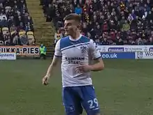 He had a brief loan at Witton Albion, making two appearances and scoring one goal for the club.[7] On 29 October 2016, he scored his first goal for Bury in a 3–2 defeat against Northampton Town.[8]