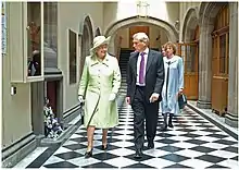 As the Presiding Officer has a role in advising the monarch, Reid was appointed a member of the Privy Council of the United Kingdom in 2004.[19] He oversaw the completion of the new Scottish Parliament building at Holyrood and the move from the Mound to Holyrood in 2004.[20] At the official opening of the new building that year, he made a keynote speech in which he paid tribute to the construction as an architectural achievement, and urged parliamentarians to "listen to the building" to inspire them in their future endeavours.[21]