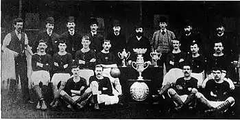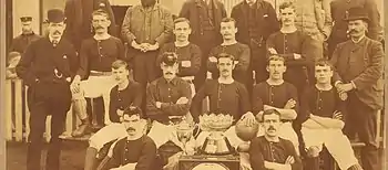 Born in Scoonie, Scott moved with his family to Glasgow at a young age and found work with Cowlairs Railway Works. Initially playing for local sides Towerhill and Northern, Scott was signed by Cowlairs in 1882, before moving to Hearts in 1889.[2] On joining the club, professionalism in Scottish football remained theoretically illegal, and "almost without exception, the players were working at a trade they had." Nevertheless, Hearts had begun to offer their team unofficial compensation, and "it is related [of Scott] that at one time when the treasury was low he offered, of his own accord, to accept less money," while continuing to play.[3] In his early cup-ties, Scott "was always famous for his grit."[4] During his tenure, Hearts won two Scottish Cups and came top of the League in 1894/95.[5] In the 1890/91 and 1892/93 Seasons, Scott was top goal scorer for Hearts. By 1897, Scott was one of the oldest players in the League, along with James Kelly.[6] "One of the marvels" of the Hearts side, Geordie Scott still appeared "endowed with all his old vigour and cleverness [...] and should the first eleven require a change on the left wing the Hearts would do worse than try the old Towerhill player."[7] That year, Scott was briefly loaned to Kilmarnock to play in the Cup Quarter Final against Third Lanark. Following this, Scott formally retired from football, but came back to play in a 1902 charity match between Cowlairs and Northern for the Ibrox Fund.[8]