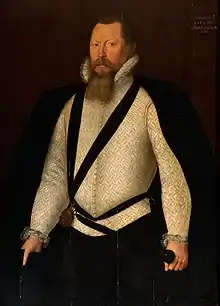 In May 1570 Shrewsbury conducted her to Chatsworth, where he foiled another cabal aiming for her release. Cecil and Mildmay visited Chatsworth in October, and agreed on Mary's removal to Sheffield Castle (Shrewsbury's principal seat), which took place shortly afterwards. At Sheffield, apart from occasional visits to the baths at Buxton, to Chatsworth, or to the old Hardwick Hall, she remained under Shrewsbury's guardianship for the next fourteen years. During the winter of 1571–72 the earl was in London, the queen during his absence being left in charge of Sir Ralph Sadler.[1] Meanwhile, in 1571, Lord Shrewsbury was appointed Lord High Steward (the premier Great Office of State) for the trial of Thomas Howard, 4th Duke of Norfolk (regarding the Ridolfi plot). Finally, in 1572, Lord Shrewsbury was appointed Earl Marshal, a position that he held (along with the aforementioned position of Justice in Eyre) until his death in 1590.