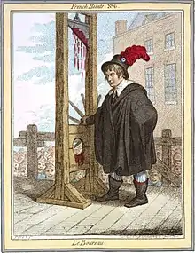 He returned to Parliament in 1796 for Southwark and sat for that seat until 1806, and then represented in turn Athlone (1806–1807), Bandon (1807–1812), Appleby (1812–1818), and Knaresborough (1818–1830).[2] During his early years in Parliament he was known for his radical views and was a supporter of Charles James Fox. The French Revolution of 1789 was a polarising force in British Whig politics with some supporting the revolution, and others such as Edmund Burke strongly opposed to it. Because of his radical views, Tierney was often portrayed in caricatures in the costume of a French revolutionary.