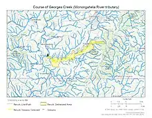 Course of Georges Creek (Monongahela River tributary) in Fayette County, Pennsylvania