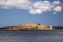 The Georges Island Lighthouse was established on the island in 1876. The original wooden tower burned in 1916 and was replaced by an octagonal concrete tower in 1917. The light was staffed until 1972 when it was automated.[5]