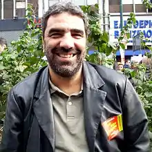 Beyond his media-related activities, Helakis is well known as a left-wing activist. The influence of his political ideas is obvious when commenting on matches, citing examples from history and politics and reminding listeners and readers that football must not be used to express national superiority or nationalistic ideas.[2] In the 1980s he was a member of the Communist Party of Greece, but after the party split in 1991, he joined the Coalition of the Left (Synaspismos). In the party's 2004 national congress he was elected in the Central Committee of the party, and in the 2007 legislative election he was a candidate for the Coalition of the Radical Left in the Athens B constituency. He was also candidate for the mayoralty in Kallithea[3] in the 2006 local elections, his platform taking 12 percent of the vote.