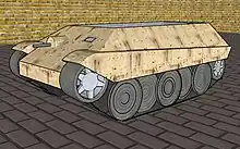 The Gepanzerter Mannschaftstransportwagen Kätzchen (Gep. MTW Kätzchen) (German for kitten) was a German armoured personnel carrier of late World War II. Auto-Union delivered two prototypes during 1944–45. The hull's shape was similar to the hull of the Panzerkampfwagen Tiger II, but much smaller. The vehicle had front wheel drive with five or six overlapping steel road wheels, possibly resembling the never-built E-25 "replacement tank"'s suspension system in appearance. Power was provided by a Maybach HL50 P engine.
