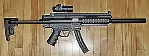 German Sport Guns GmbH is a German firearm manufacturer. Their company focus is on .22 LR firearms, intended for sport shooting and plinking. Its products are copies or replicas of famous military firearms, but are often subject to much less legal scrutiny because of the cartridge they use. Additionally, .22 LR is often less than 1/10 the price of centerfire ammunition, making it a cost-effective way to teach shooting skills and recreational shooting. The company also produces airsoft replicas.[2]