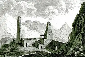- Ghalghai Koashke (ГIалгIай Коашке)[38] — ancient outposts (stone towers), located in the Terek Gorge, Tarskoye Valley and the Assa Gorge. The outposts in the Assa Gorge of Ingushetia are also known as the Ghalghai Na'arge[39] or Durdzuk Gates.[40]