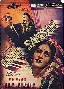 Ghar Sansar (Home Life) is a Bollywood film. It was released in 1942.[1][2] The film was a family melodrama produced by Sunrise Pictures and directed by Vishnu M. Vyas, who also wrote the screenplay. The story was written by Mohan G. Dave. The music was composed by Shyam Babu with dialogues and lyrics by Ehsan Rizvi. It starred Sardar Akhtar, Mazhar Khan, Nazir and Kajjan in the main roles.[3]
