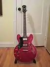 The Gibson ES-335 is a semi-hollow body semi-acoustic guitar introduced by the Gibson Guitar Corporation as part of its ES (Electric Spanish) series in 1958. It features a solid maple wood block running through the center of its body with upper bouts that are hollow and two violin-style f-holes cut into the top over the hollow chambers.[1] Since its release, Gibson has released numerous variations of and other models based on the design of the ES-335.
