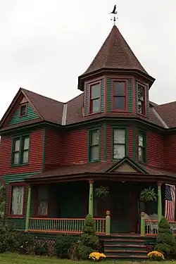 Gilbert E. Purple House, also known as Northern Tioga Telephone Company building, is a historic home located at Newark Valley in Tioga County, New York. It was built in 1903 and purchased by Gilbert Purple in 1911, who expanded it to its present form in 1913. It is a modest 2+1⁄2-story Queen Anne style wood-frame building on a stone and concrete foundation. A large 2-story addition was completed about 1930 for use by the telephone company. By the mid-20th century, the building served dual purpose as residence and offices of the Northern Tioga Telephone Company, a small, independent local telephone company.[2]