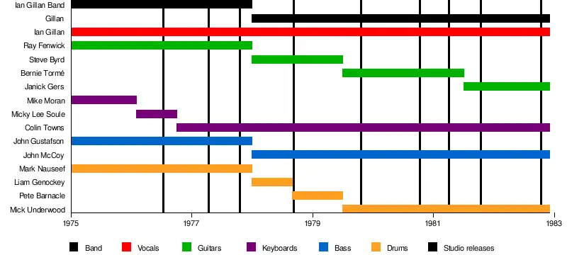 ![]() Ian Gillan, frontman and leader of the band, in 1983 | |