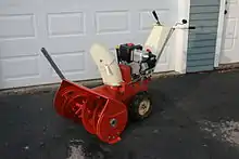 The "Snow Cannon" was the Gilson line of compact snow throwers, for which a patent was granted in 1980.[5] These machines were powered by two-stroke engines (manufactured either by Briggs & Stratton, Tecumseh or OMC (Outboard Marine Corp). The throwing mechanism on the Snow Cannon machines was advertised with the marketing term "TURBO-THRUST".