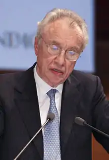 Bazoli was a professor of Administrative Law and Public Law at the Università Cattolica Milano until retiring from his university career in 2001.[2] While serving as a director of Banca San Paolo di Brescia in 1982, then Treasury Minister Nino Andreatta asked him to contribute to the bailout of Banco Ambrosiano, the Italian bank overwhelmed by the Calvi scandal.[3] He became chairman of Nuovo Banco Ambrosiano and managed the sale of Rizzoli-Corriere della Sera (now RCS MediaGroup), the market-leading editorial group that Angelo Rizzoli had sold to Calvi. At the time, Rizzoli-Corriere della Sera was Italy's largest editorial group. As chairman of Mittel, one of the companies that took part in the acquisition of Rizzoli-Corriere della Sera, he benefited personally from the transaction. He merged Nuovo Banco with Banca Cattolica del Veneto, forming Banco Ambrosiano Veneto (BAV). In 1990, he was instrumental in getting the French group Crédit Agricole to become one of BAV's shareholders, thereby thwarting Gemina’s attempt to take on a leading role in the bank.[4] The 1997 merger of BAV and Cariplo led to the creation of Banca Intesa, with Bazoli becoming the new bank's chairman. In later years, Banca Intesa merged with Banca Commerciale Italiana (1999) and Sanpaolo IMI (2007), thus creating the current Intesa Sanpaolo.[5]