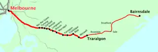 The Gippsland Plains Grassy Woodland is an ecological temperate grassland community located in the Gippsland region in southern Victoria, Australia. Stretching from Bairnsdale in the east to the eastern portion of Melbourne in the west, they typify one of Victoria's most threatened and disconnected indigenous ecosystems. The Gippsland Red Gum Grassy Woodland is the most prominent community in the system situated in the centre.[1][2]
