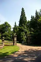 In 1885 Kelly's Directory noted Girsby Manor and its former owners, the Pisdar and Lister families. By 1885 Lords of the Manor and owners of the whole parish of Burgh on Bain were the trustees of the estate of the late Captain John Wilson Fox JP, the previous resident of Girsby Manor who died in 1882.[4] The Manor was later owned by Captain Fox's son, John St. Vigor Fox, who became High Sheriff of Lincolnshire in 1906.[5] Girsby Manor was demolished in the mid-20th century,[6] but the building's Grade II listed 1905 or 1909 Baroque-style entrance, with sculpted foxes set on gateway pillars, remains.[7][8]