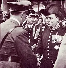 ![]() Giuseppe Mastromattei meeting Adolf Hitler at the Brenner Pass in May 1938, with Heinrich Himmler in the background | |
