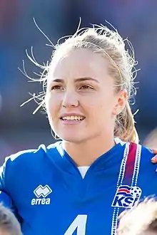 She was called up to be part of the national team for the UEFA Women's Euro 2013.[10] On 7 April 2022, she played her 100th match for Iceland in a 5–0 win over Belarus in the 2023 FIFA Women's World Cup qualification.[11]