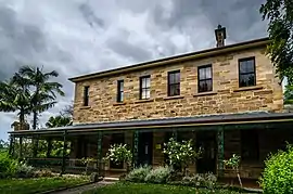 Before 1838, people with mental or emotional problems in the Sydney area were housed in a "lunatic asylum" in Gladesville, a suburb located on the Parramatta River's Northern banks between Sydney and Parramatta, or in the Female Factory at Parramatta, twenty-four kilometres west of Sydney. In the 1830s, construction of a purpose-built asylum began on the banks of the Parramatta River, in the area now known as Gladesville. The original sandstone complex, known initially as Tarban Creek Lunatic Asylum, was designed by the Colonial Architect, Mortimer Lewis, between 1836 and 1838.[3] Patients were then transferred from Liverpool and the Female Factory. James Barnet designed additional buildings in the hospital grounds precinct.[4][5]