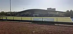 Glasgow National Hockey Centre is a facility for playing field hockey, situated on Glasgow Green in Glasgow, United Kingdom. The facility was constructed for the Commonwealth Games in 2014. The facility includes 2 Synthetic Hockey Pitches, Player Facilities and a Permanent stand for spectators. It also has office space which is the new home of Scottish Hockey. For the 2014 Games, additional temporary stands were erected to increase the capacity during the games. The facility is used for domestic competition and hosted the 2014 Women's Hockey Champions Challenge I before the Commonwealth Games.[1] [2] The centre is also home of Rottenrow Hockey Club