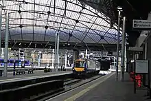 In August 2017, work began on the £120 million redevelopment of the station, which at the time was expected to be completed by December 2019, but was pushed back until 2020 due to delays in receiving power to go forward with the work.[17][18][19] Platforms 2 through 5 were subsequently extended in 2019 to accommodate longer trains introduced as part of the Edinburgh to Glasgow Improvement Programme (EGIP).[20] Demolition of surrounding buildings was completed in October 2018 to accommodate the lengthened platforms and expanded concourse.[21]