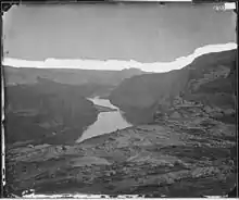 In the 1830s, trapper Denis Julien may have visited upper Glen Canyon by boat.[3]: 127 In 1869 and again in 1871, scientific expeditions led by John Wesley Powell traveled through Glen Canyon en route to the Grand Canyon, resulting in the first formal surveys of the main channel and many of the side canyons.[3]: 44–103