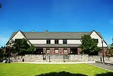On the outside is a garden,[5] and a lawn area to the east with a small stage that is used for fair weather events such as summer concerts.[8] Also outside the building is a new wheelchair ramp that was added to the east side where a new entrance was added.[5] There are two terraces on the exterior of the building and the inside also has a kitchen area.[14]