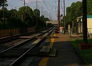 ![]() Glenolden station platform as seen from the south side of the tracks looking east. | ||||||||||||||||||