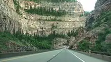 The canyon is widely considered one of the most scenic natural features on the Interstate Highway System of the United States. Foot access to the canyon is available at four rest areas along Interstate 70 in the canyon. The Hanging Lake Rest Area (exit 125) provides access to the canyon along a stretch where I-70 is concealed in the Hanging Lake Tunnel. The freeway is also prone to rockslides in the canyon, such as the ones that closed it in February 2016 and July 2021.[3]
