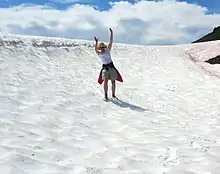 Glissading is the act of descending a steep snow- or scree-covered slope via a controlled slide on one's feet or buttocks. It is an alternative to other descent methods such as plunge stepping, and may be used to expedite a descent, or simply for the thrill. Glissading involves higher risks of injuries than other forms of descending.[1][2] Glissading with crampons is especially dangerous and should never be attempted.[1][3]