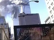 Carey's first promotional appearance to promote the film itself was on its opening day on Fox Theater, Westwood Village in jeans and a black tank top adorned with an American flag, paying homage to victims of the September 11 attacks. After giving interviews and signing autographs, Carey sat in the center section of the theatre flanked by security guards and handlers, along with audience members who had won tickets through the Los Angeles radio station Power 106. During her appearance, Carey said she hoped that Glitter would provide movie-goers an emotional escape during the attacks' aftermath in the country. "But obviously nothing can overshadow the events that have gone on, and I need to stay focused on that," she completed.[29]