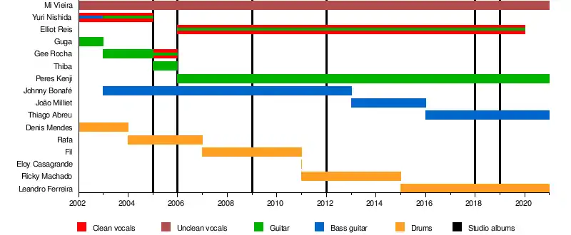 | Past members | Yuri Nishida Gee Rocha Guga Thiba Johnny Rafa Fil Eloy Casagrande Ricky Machado João Milliet Elliot Reis |